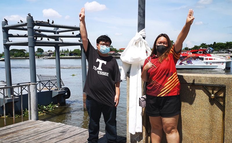 เพนกวินและกลุ่มผู้รักประชาธิปไตย จัดกิจกรรมผูกโบว์ขาวทวงความยุติธรรม-ต้านเผด็จการ ที่ท่าน้ำนนท์ - มติชน