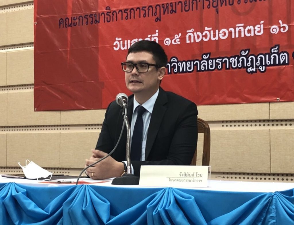 “ปิยบุตร” ร่วมสัมมนา “การกระจายอำนาจกับหลักกฎหมายและกระบวนการทางกฎหมาย” เจอชูป้ายต้านที่ มรภ.ภูเก็ต